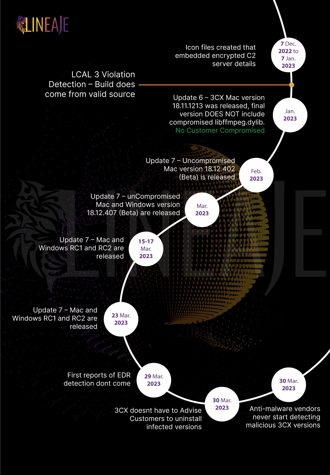 Chronology of the 3CX breaches with Lineaje Attestation Levels In place